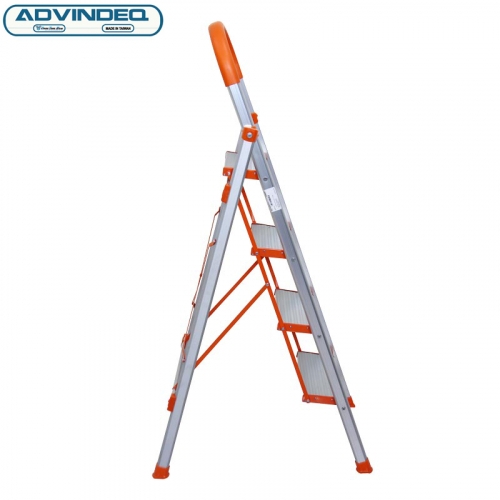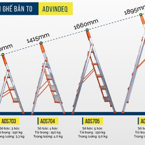 Thang nhôm ghế 4 bậc xếp gọn bản to Advindeq ADS704- Chiều cao bậc cao nhất so với sàn nhà: 930mm, Kích thước khi mở thang : 490(ngang bậc) x 730(dài) x 1415(cao) mm , Kích thước khi gấp gọn : 490 x 65 x 1510(cao) mm, Kích thước bao bì: 520 x 65 x 1510mm, Khoảng cách giữa các bậc : 260mm, Thang được thiết kế với sơn tĩnh điện màu trắng cam siêu bền, thiết kế đẹp mắt giúp bạn leo trèo ở những vị trí trên cao để sửa chữa tháo lắp các thiết bị điện hay đơn giản lau chùi các vật dụng trong gia đình, văn phòng hoặc làm giá đựng đồ đạc.