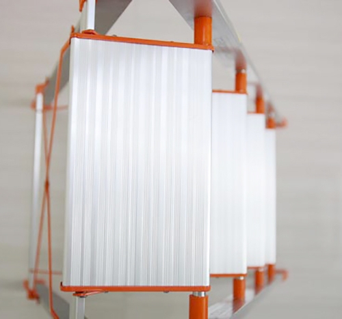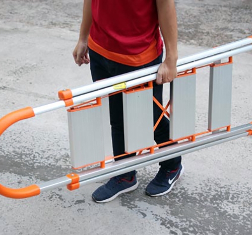 Mở rộng hết cỡ thang, đặt ngay ngắn trên mặt sàn và bước từng bậc khi trèo lên thang