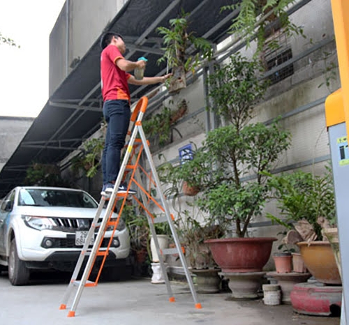 Sử dụng thang trèo cao chỉnh sửa các bức ảnh, tivi treo tường rất tiện