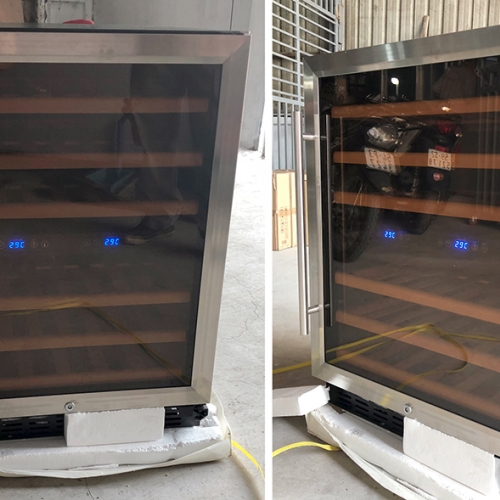 Tủ mát rượu Kaff KF-WC01 có dung tích lớn cho phép bạn bảo quản lên đến 56 chai rượu, tủ được hoàn thiện từ Inox với nội thất bên trong tích hợp đèn LED chiếu sáng và có giá đỡ bằng gỗ có thể điều chỉnh để thích hợp với từng loại rượu khác nhau rất tiện dụng, hệ thống ray trượt 3 tầng cao cấp giúp bạn tiện lợi cho việc cất hay lẩy rượu ra khỏi tủ,